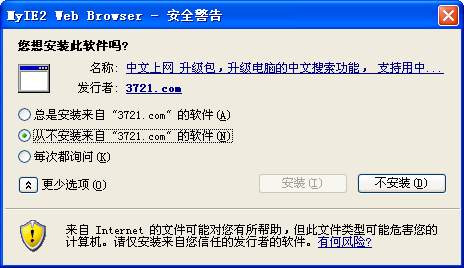 s \3”,并且将右边的“MinLevel”子键修改为“10000”,这样即可降低默认的安全等级。 ②通过IE点击下载文件资源的时候,我们会发现下载窗口中提供了文件名称、类型和发送者等信息。这是因为系统会根据下载的文件内容而不是文件扩展名判断出文件是否经过伪装的,通过这种方式可以有效避免误入网络陷阱。 ③以前当我们登录一些网站之后,往往会出现要求安装各种插件的窗口,如果暂时取消这些插件的安装,日后打开网站仍然会有相同的提示。安装了SP2之后就可以对这些插件进行从不安装的选择(图7),不仅能够避免频繁出现的提示窗口,更主要的是阻止了恶意插件自动安装带来的严重后果。  图 7 OE中的“镇魔幡” 以防护系统安全为核心的SP2除了对上述几个方面进行较大的改进之外,自然也没有忽视大家常用的Outlook Express(OE),而且针对它还定制了一些颇具新意的安全防护功能。 在上期的《解剖史上最强的补丁包》一文中我们已经知道OE现在已经能以纯文本方式显示纯文本邮件,避免恶意代码被无页码:[1] [2] [3] [4] [5] [6] [7] [8] [9] 第7页、共9页 |