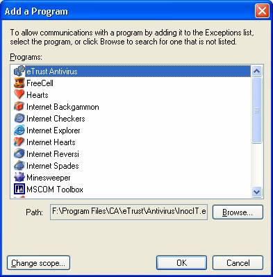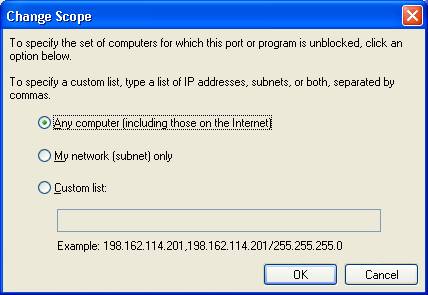 如果组策略允许,您可以通过点击“添加程序”来指定一个程序名,从而创建附加例外;也可以通过点击“AddPort”来指定一个 TCP 或 UDP 端口,从而创建例外。 当您点击“添加程序”时,将显示“添加程序”对话框,您可以从中选择一个程序或者浏览查找一个程序文件名。下图显示了一个示例。  当您点击“AddPort”时,将显示“添加端口”对话框,您可以从中配置 TCP 或 UDP 端口。下图显示了一个示例。  新的 Windows 防火墙允许您指定例外通信的范围。这个范围定义了哪一部分的网络连接产生的例外通信是被允许的。要定义一个程序或端口的范围,请点击“更改范围”。下图显示了一个示例。  在定义一个程序或端口的范围时,您有三个选项可以选择: • 任意一台计算机(包括 Internet 上的计算机) 从任何 IPv4 地址发出的例外通信都是被允许的。这种设置可能会使您的计算机容易受到 Internet 上的恶意用户或程序的攻击。 • 仅限我的网络(子网) 只有从符合以下条件的 IPv4 地址发出的例外通信才是页码:[1] [2] [3] [4] [5] [6] [7] 第5页、共7页 |