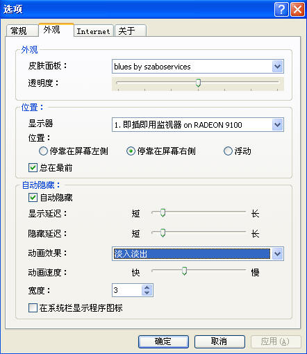 查、快速启动等数十项信息(图2),你还可以根据自己的需要,对这些信息进行修改。  图 2 它的使用方法非常简单,如果想添加信息面板,就在侧边栏上单击鼠标右键,选择“添加”面板,即可弹出“新建面板”对话框,根据需要设置相应的项即可。如果你想调节一下面板,只要用鼠标拖动到你想放的位置就可以了! 如果你想发挥面板的最大功能,可以在相应信息的面板上点击鼠标右键,选择“面板属性”,打开面板属性对话框,即可设置该面板的细节信息。 在侧边栏上的任意位置点击鼠标右键,选择“选项”,还可以对整个面板的效果进行调整。如让面板实现透明效果和自动隐藏等。怎么设置,就看你的爱好了(图3)。 页码:[1] [2] [3] [4] [5] 第4页、共5页 |