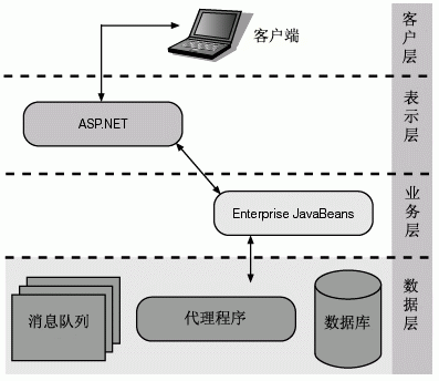 的原始数据类型或者嵌套的原始数据类型组成。 此时需要公开复杂数据类型以便其他平台可以使用它。 考虑如图 3.1 所示的集成一个 ASP.NET 表示层和一个 J2EE 业务层的示例。 在此示例中,J2EE 业务层中的一个 EJB 公开了一个 ASP.NET 表示层随后调用的方法。 在一个生产应用程序中,该返回数据不可能是简单的“Hello World”字符串,它可能包含复杂元素。  图 3.1: ASP.NET 表示层连接到 J2EE 业务层 幸运的是,已经存在许多方法可使应用程序在不同平台之间交换不同类型的数据,并且第 4 章和第 5 章将详细地描述这些选择。 然而,在能够在两个平台间建立连接之前,您必须在它们试图进行交换之前确保双方理解特定的数据类型,除此之外也有一个使双方都可以使用的传递数据的方法。 下一部分讲述如何使用序列化实现该传递。 使用序列化 序列化是使一个对象或类编码成为永久的或可传输状态的过程。 这使您接受一个复杂数据类型,然后编码、保存、传递和解码,并可能使用一个单独的进程处理解码。 有两个主要的序列化类型: • 二进制序列化 鈥_ 接受数据类型并且将其转换为二进制流。 • XML 序列化 鈥_ 将数据类型转换为可以随后转换为 XML 文档的 XML 流。 可以从任一种序列化类型中接受输出,并将其存储在内存中、放在文件中,还可以通过网络连接进行页码:[1] [2] [3] [4] [5] [6] [7] 第2页、共7页 |
