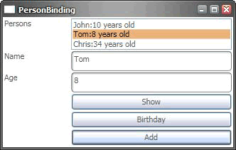 接口由 Person 类实现,以通知绑定到实例的任意控件,其中一个属性已经更改。相反,公共属性让绑定控件的数据可以访问每个属性的当前值,并应用 UI 中发起的变化。图 1 中的 Name 和 Age TextBox 控件显示了 Person 对象的一个实例,该对象绑定到每个控件的 TextContent 属性。  当前项目 在 Name 和 Age TextBox 控件绑定到单个对象时,Persons ListBox 控件绑定到 Person 对象的集合中。由于 ListBox 中的选择发生了变化,当前项目 也发生变化,所有绑定控件的数据按照它们认为合适的方式进行处理。例如,如图 1 所示,通过突出显示其列表中的对象,ListBox 反映了当前项目,同时 TextBox 将仅显示当前项目的绑定属性值。当前,跟踪哪个项目是由数据的视图 来管理的。视图是一个位于数据和共享数据视图的控件之间的对象,管理着像当前项目、筛选和排序这样的操作。实际上,在 Avalon 中,完全不需要绑定到数据,而是使用程序员或 Avalon 提供的数据视图。 class Window1 : Window { ArrayListDataCollection persons = new ArrayListDataCollection(); void Window1_Loaded(object sender, EventArgs e) { persons.Add(new Person("John", 10)); pers页码:[1] [2] [3] [4] [5] [6] [7] [8] 第2页、共8页 |