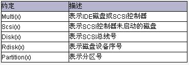 boot loader]包括等待时间和默认引导系统两个参数,timeout后边的数字表示等待的秒数,default后边的是默认引导系统的位置。[operating systems]则包括安装的所有系统的ARC(Advanced RISC Computing)引导路径(等于号之前的部分)和他们在菜单上显示出的名字(引号之间的文本),以及启动参数(斜杠后边的部分)。下边的表三将详细向您解释ARC路径的含义  表三 注意,在multi、scsi、disk和rdisk序号都是从0开始的partition是从1开始的。下边的表四将向您解释常用启动参数的意义。  表四 因为boot.ini是系统保护文件,它隐藏在系统盘根目录下,页码:[1] [2] [3] [4] [5] 第4页、共5页 |