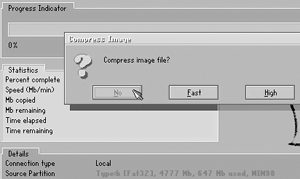 机器为例,希望备份Windows 98操作系统时选择第一个分区(C区),而欲备份Windows 2000时则选择第二个分区(D区),然后选择“OK”继续。 选择您将制作的镜像文件(.gho文件)的存放位置。呵呵,注意了——图中“File name”后面的“Win98”可是需要自己输入的哟。当然,您也可以根据具体情况输入“Windows 2000”或“sys”什么的。最后,点击“Save”继续下一步。 接下来,Ghost会让您选择压缩比。“No”是不压缩,“High”是高比例压缩(压缩速度自然要慢一些),“Fast”是墙头草,左右都想沾点。现在硬盘的价格很便宜,而“寸金难买寸光阴”,聪明人自然是要选择不压缩了。呵呵,这样子刻制镜像文件的速度会快很多的。 页码:[1] [2] [3] [4] [5] 第3页、共5页 |