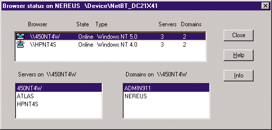 Files_6016/200805/2008052321022480.gif > 图一 图二 Browmon能够按照用户指定的间隔自动刷新浏览列表,利用Browmon可以快速找出域的主浏览器和后备浏览器。 Browstat比Browmon还要强大,除了显示浏览列表之外,它还能够强制执行选举和复位主浏览器。NT 4.0资源工具包提供了Browstat的一个早期版本,Win 2K资源工具包提供了Browstat的一个升级版本。两个版本的故障检测能力基本相同,但Win 2K的版本用起来方便一些。NT 4.0提供的Browstat要求在每一个命令中提供协议名称。协议名称可以通过Net Config Rdr命令获得。例如,假设在一台Win 2K Pro机器上执行Net Config Rdr命令的结果如图三所示,如果要用NT 4.0版本的Browstat显示出后备浏览器清单,应当执行:browstat gb NetBT_Tcpip_{4C8BA126-9BF4-476D-8BDB-3BB8548347B3}。(其中Gb即为Getblist,它是Browstat的一个子命令,用来提取后备浏览器的清单)。 图三: Win2K版的Browstat有一个Dumpnet子命令,能够显示出协议名称并分别赋予一位数字的协议编号,所有Browstat其他子命令中的协议名称都可以用这个协议编号替代。例如,假设Brow页码:[1] [2] [3] [4] [5] [6] [7] 第2页、共7页 |