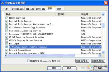 5.路由器和远程访问服务:这种服务包含了多种能力,这些能力正是多数系统管理员可能会需要单独提供的。这些服务中的任何一个对于一个典型的桌面系统,如对XP来说都是必要的,然而,作为一项单独的服务它们又需要关闭。路由选择和远程访问提供了一种将系统用作路由器和NAT设备的能力,或者作为一个拨号访问网关,或者作为一个VPN服务器。如果你不想让设备发挥这种功能,完全可以禁用之。