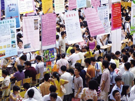 其实,不仅仅是高等教育部门,政府和社会各界都在努力探索,解决严峻的大学生就业难题。来自教育部门的统计显示:2006年全国普通高校毕业生达413万人,比上年增加75万人,增幅达22%左右,就业压力进一步增大。 >>>2006年大学生就业状况调查公布
