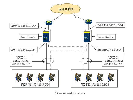 (2), 我们有两条以上的Internet线路,需要对他们进行负载均衡和路由线路、路由器的备份(VRRP也主要是为这种需求设计的)