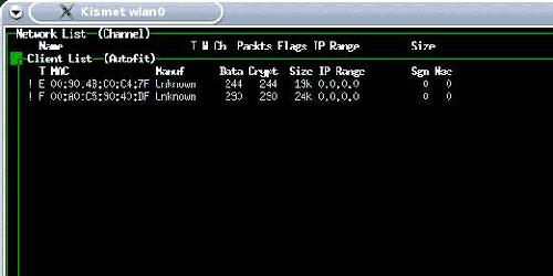 如果你没有看到Target计算机的MAC地址,请检查一下,确认一下它是否已开机或连接到了目标AP(启动目标计算机,连接到目标AP并打开WEB页面),大约10-30秒后,你将会看到目标计算机的MAC地址在Kismet中弹出。当然,把所有的客户端MAC地址都记下来也不失为一个老道的方法,这样就可避免在开始破解过程时一个客户端也没有出现时受阻。