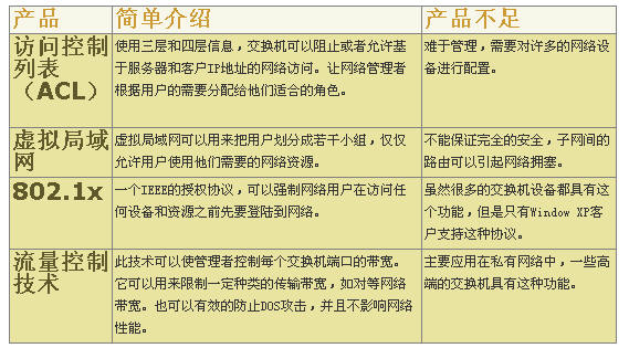 议。许多的交换机都支持下面的这些功能,使用这些技术和协议可以很好的帮助用户对网络资源的访问控制。