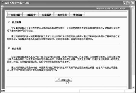 件自检利器 杀毒软件是所有用户的必备工具之一。为了增强对病毒、木马和黑客攻击的有效防御,大多主流杀毒软件都集成了系统隐患扫描功能。因此对于普通用户来说,对本地系统进行系统隐患自检,不妨使用杀毒软件自带的扫描工具。 下面笔者以瑞星2005软件为例,介绍如何对本地系统进行系统隐患自检及其修复。运行“瑞星系统安全漏洞扫描”工具,在主窗口中切换到“安全扫描”标签页(图1),确保选中“安全漏洞”和“安全设置”这两个选项,这里“安全漏洞”是指Windows系统本身存在的系统隐患,而“安全设置”是指用户的不合理设置产生的系统隐患。  图1 接着点击下方的“开始扫描”按钮后,该工具就开始对本地系统进行全面系统隐患扫描,稍等片刻,就会在“扫描报告”标签页中列出本地系统存在的系统隐患,如笔者的Windows系统就发现有两个安全漏洞;用户不安全设置也发现有五处,其中可以自动修复的有两处不安全设置,这样就完成了本地系统的系统隐患的自检。要想更详细地了解每个系统隐患的具体细节,分别切换到“安全漏洞”和“安全设置”标签页,在列表框中显示着每个系统隐患项目的详页码:[1] [2] [3] [4] [5] [6] [7] 第3页、共7页 |