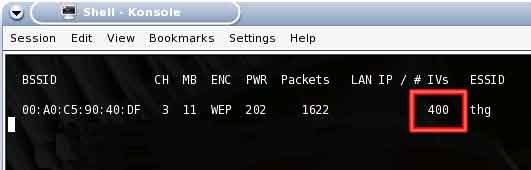 dump wlan0 cap1 MACADDRESSOFAP。如图十八所示。  图十八:Airodump命令的格式 这个命令仅仅是使airodump把捕获到的目标AP的数据包写入到那个生成的数据文件中(cap1)。 按下Ctrl+C键退出Airodump,输入ls –l命令列出这个目录中的内容,看看扩展名为.cap文件的大小。在经过几秒钟的捕获动作后,如果有数据包被成功地捕捉下来,那生成的这个包文件大约为几个 KB大小。如果Airodump使用同一个参数在捕获数据包时被停止和重新开始后,这个生成的包文件会依照前一个文件顺序添加,如第一个为cap1,第二个为cap2等。 当Airodump在运行时,在该窗口左边看到的BSSID下列出来的值就是目标AP的MAC地址。在这个Airodump的运行窗口中,我们会看到Packet和IV这两个值正在不停地增长,这都是由于Windows检测网络时产生的正常网络通信,甚至在目标客户端上并没有打开WEB网页收发email也是如此。过一会儿后就会看到IV值只会几个几个慢慢地上升,不过如果在目标计算机上浏览网页时,随着每一个新页面的打开,Airodump中的IV值会在不断地快速上升。如图十九所示。  图十九:Airodump显示的IV值 在这儿,我们对Pac页码:[1] [2] [3] [4] [5] [6] [7] 第5页、共7页 |
