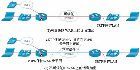 > 应用 思科接入路由器的介质验证和加密特性与思科IP电话和Cisco CallManager上的介质加密特性结合在一起,可为整个WAN或LAN上的IP通信提供安全的环境。如下图所示,SRTP用于加密分支机构A中话音网络模块上的话音呼叫。这可在办公室中提供模拟电话间或传真机间的安全呼叫。同样,用户也可从分支机构A中的时分复用(TDM)端点或模拟电话向位于总部的思科IP电话发出安全呼叫。分支机构A中的网关与Cisco CallManager间的信令通过IPSec得到保护,而总部IP电话与Cisco CallManager间的信令则通过TLS得到保护。 图1:介质验证和加密  主要特性和优势 介质验证和加密 介质验证目前为话音呼叫提供端到端的(从思科IP电话到思科IP电话)的加密。思科接入路由器的介质加密特性使路由器添加了对IP电话到网关以及网关间安全呼叫的支持。客户现已能够使用基于IETF RFC3711标准的安全RTP向PSTN网关发出加密呼叫。页码:[1] [2] [3] [4] [5] [6] [7] 第3页、共7页 |