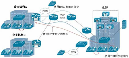 则是基于路由器间隧道的加密。此外,SRTP只加密话音分组,而IPSec VPN隧道可同时传输数据、话音和视频。 然而,SRTP是IPSec VPN的补充话音加密方法。对于部署了可信任的WAN网络的大型企业和中小企业来说,SRTP可在该网络上端到端地加密话音。然而,大多数大型企业和中小企业都通过互联网或服务供应商管理的WAN开展业务。因此,WAN可能是不安全的,而VPN隧道可在分支机构间安全地传输数据。SRTP可保护在IPSec VPN上的WAN中传输的话音流量的安全,而这个IPSec VPN同时也用于传输数据。如下图所示:  图2:安全的 RTP和V3PN 特性的提供情况  PVDM2分组/话音DSP模块与2811、2821和2851集成多业务路由器主板上的VIC/VWIC一起使用。也可与2821和285页码:[1] [2] [3] [4] [5] [6] [7] 第6页、共7页 |