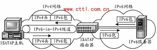 从上面的通信过程中我们可以看出,ISATAP实际上是将IPv4网络作为一个承载平台,通过在其上面建立一个IPv6-in-IPv4自动隧道来完成IPv6通信的。 2. ISATAP主机与其他网络之间的通信过程 ISATAP主机除了可以在ISATAP域内与其他ISATAP主机通信外,还可以通过ISATAP路由器实现与其他网络的通信。比如,ISATAP主机就可以通过ISATAP路由器与IPv6网络中的IPv6服务器进行通信,其通信原理如图2所示,通信过程如下: 图2 ISATAP主机与IPv6网络中的IPv6服务器之间的通信过程 ①ISATAP主机获得ISATAP地址(站点本地地址),并将下一跳跃点next hop 设为ISATAP 路由器的ISATAP地址(站点本地地址); ②当ISATAP主机送出目的地为所在子网络以外的地址时,ISATAP先将IPv6数据包进行IPv4封装,然后以隧道方式送到ISATAP 路由器的IPv4地址; ③ISATAP 路由器除去IPv4包页码:[1] [2] [3] [4] [5] [6] [7] [8] 第3页、共8页 |