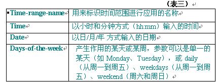 ny eq 80 allow-http! Ö必需步骤: 1、定义时间范围:(具体参数见表三) time-range time-range-name absolute [start time date] [end time date] periodic days-of-the -week hh:mm to [days-of-the-week]hh:mm 2、定义访问列表并应用时间范围名称,以及将列表应用到接口  absolute是用于定义全面的时间范围,在一个“time-range”中,只能有一个absolute,但可以有多个Periodic定义具体的时间范围 ü自反访问列表: ð自反访问列表在路由器的一边创建IP流量的动态开启,该过程是基于来自路由器另一边的会话进行的。它必须是基于扩展的IP命名访问列表。作用类似于一般访问列表中的“established”参数,它可创建一个动态的临时的相反方向的访问列表 ð自反访问列表创建语句: 1使用一条permit语句创建一个扩展ip命名访问列表,并在每个permit语句中使用reflect关键字,用以表明访问表中使用一个自反向开启表项。格式:permit protocol source destination reflect name [timeout seconds]。 2、使用evaluate语句将终止包含一条或多条自反向表项的扩展ip命名访问列表。格式:evaluate name页码:[1] [2] [3] [4] [5] [6] [7] [8] [9] 第6页、共9页 |