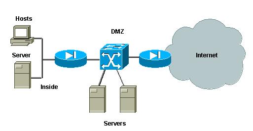 供在主VLAN需要配置到 下落数据流产生由相同子网和路由回到相同子网的VACLs。 在一些线路卡,PVLAN映射/映射/中 继端口的配置是受多个PVLAN映射其中必须属于不同的端口专用集成 电路的一些限制支配(ASIC)为了获得配置。那些限制在新的 端口ASIC Coil3 被去除。参见软件配置的最新的 Catalyst 交换机文档的这些详细资料。 示例分析 以下部分描述三个案例 分析,我们相信是多数实施代表并且给予详细资料与PVLANs 和 VACLs的安全部署有关。 这些方案是 : 转接DMZ 外部DMZ 与防火墙并联 的VPN集中器 转接DMZ 这是其中一个最普通配置的方案。 在本例中 ,DMZ实现一个转换区域在二个防火墙路由器之间如下图所示的。 图2:转接 DMZ  在本例中,DMZ服务器应该由外部获取并且内部用户,但他 们不需要与彼此联络。 在某些情页码:[1] [2] [3] [4] [5] [6] [7] [8] [9] 第8页、共9页 |