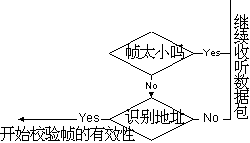 CD如何接收 我们已弄清了电缆段上传输处理过程。现在让我们来看一下接收端的情况。正如本章早些时候所讨论的那样,工作站传输时它是向电缆系统的两个方向发送的。在电缆段上活动的工作站实现下列四个步骤: 第一步:游览收到的包并校验包是否成为碎片 在Ethernet局域网上,电缆段上的所有工作站将浏览中电缆上传输的每一个包,并不考虑其地址是否是本地工作站。(这与电话会议系统类似, 虽然对话不是给你的,但你也能听到。)如下图所示, 接收站检查数据包来保证它有合适的长度,而不是由冲突引起的碎片,包长度最小为64字节。 第二步:校验目标地址 如下图所示,接收站在判明已不是碎片之后,下一步是校验包的目标地址,看它是否要在本地处理。如果包的地址是本地工作站地址,或是“广播地址”,或是被认可的多站地址,工作站将校验包的完整性。