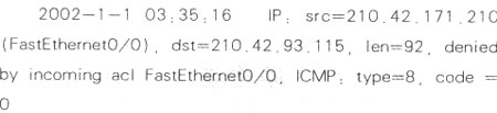 导致网络拥挤、堵塞。这就是以下大量1CMP报文数据产生的原因! 下面便是使用了访问列表后,使用debugIPpacket detaiI命令后,一秒内产生的l35条记录中的1条记录:  对记录的解释如下: IP.表示这条信息是关于IP报文的。 src=218.72.13.36(FastEtherent0/0):IP报文的源地址和收到报文的接口名称 (如果不是本地生成的报文)。 dst=210.42.92.86.IP报文的目的地址和发送报文的接口名称 (如果路由成功的活)。 len=92:IP报文的长度。 Denied by incoming acl FastEthernet0/0:被FastEthernet0/0的接收接口的接收访问表拒绝。 ICMP:type-8,code-0:ICMP报文的类型和代码值。 随机一秒钟就有l35次的1CMP报文,可想而知高峰期一分钟有多少?一小时有多少? 蠕虫一旦发现存活的主机,便试图使用135端口的RPC漏洞和80端目的Wehdav漏洞进行溢出攻击。溢出成功后会监听666-765范围中随机的一个端口,等待页码:[1] [2] [3] [4] [5] [6] 第3页、共6页 |