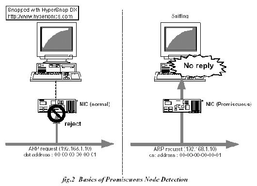 目的地址设置为00-00-00-00-00-01会发生什么?处于正常模式下网络节点的以太网卡会认为这个查询包是发往其它主机的,其硬件过滤器会拒绝接收这个包;然而,如果这个网络节点(192.168.1.10)的以太网卡处于混杂模式(promiscuous mode)下,那么即使以太网地址不匹配,其硬件过滤器也不进行任何过滤,从而使这个查询包能够进入到系统的内核。因为这个节点的IP地址和查询包的要查询IP地址相同,其内核就会认为ARP查询包到达,应该作出应答。但是,另我们吃惊的是,这个处于混杂模式节点的内核不会应答ARPR查询包。这种出人意料的结果说明这个包被系统内核过滤掉了。在这里我们把这叫作软件过滤器。  再进一步,我们可以通过区别硬件过滤器和软件过滤器的不同特征来检测处于混杂模式的网络节点。硬件过滤器一般会阻塞所有无效的分组(这些分组显然不会进入系统内核),因此能够通过硬件过滤器一般也能够通过软件过滤器,这种情况我们不多做讨论。现在我们需要构造应该被被硬件过滤器阻塞,但是却能够通过软件过滤器的报文。如果把这种报文送到各个网络节点,那么处于普通模式下的网络节点将不做应答;而处于混杂模式的节点会进行应答。<页码:[1] [2] [3] [4] [5] [6] [7] [8] [9] 第6页、共9页 |