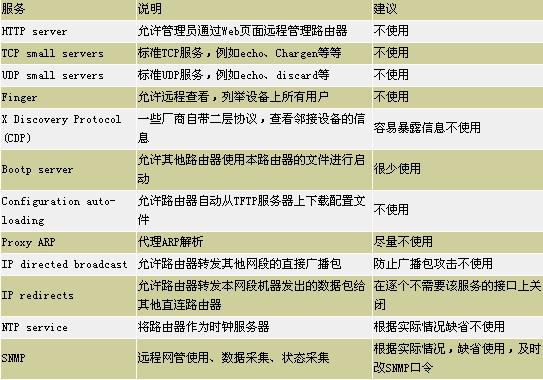 人员的密码,并进行权限分级,并按照要求记录每个人操作路由器的命令。AAA认证机制需要管理员保证AAA服务器的安全。 路由器服务安全 路由器除了提供Telnet远程登录服务外,还提供很多二层、三层的服务。路由器上运行的服务越多,安全隐患也就越大。其实,很多服务是路由器通常不需要的,这就需要管理员了解各种服务的用途,根据实际情况关闭一些不需要的服务。表三说明了一些路由器常见服务的功能和应对措施。 表三 访问控制列表和流量过滤 在缺省情况下,路由器将转发一切有路由的数据包,但是,管理员可以根据需要限制某些流量通过,一般使用访问控制列表(Access List)实现,也可以用它来限制用户对路由器的访问。 远程操作控制 管理员应该在提供远程操作(Telnet、SSH、HTTP等)的接口上应用访问控制列表,使其只允许某个网段或者某个IP对路由器进行远程操作,这样可以有效避免攻击者进行暴力密码破解。 SNMP访问控制 SNMP提供了口令和IP许可两层安全保护机制。口令又可细分为只读口令和读写口令,分别为不同权限而设置页码:[1] [2] [3] [4] [5] [6] [7] [8] 第4页、共8页 |