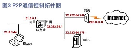 TP)和443(一般用于HTTPS)端口进行通信,而这两个端口对于防火墙来说一般都是打开的。我们采用了两种方法进行测试,旨在考察防火墙是否可以控制Skype通信以及是如何实现此功能的。拓扑如图3所示(第二种拓扑用代理服务器取代网关,其余配置类似)。  P2P通信控制拓扑图 实际测试中,只有Check Point i-SECURITY SP-5500和FortiGate 3600能够专门针对Skype进行控制,而且两种测试拓扑都控制成功,尽管它们在配置上有所区别。 不管是哪种测试拓扑,在一开始,我们并没有启动Skype控制,而是在防火墙上添加了必要的地址和策略配置,除了域名解析外,我们只允许目的端口为80和443的通信通过。并启用了NAT,还根据需要进行了默认路由的配置。保证Skype能够成功联机并通过Sniffer进行了抓包以确认通信是否按照预期的那样进行。 然后,我们打开防火墙的控制选项。在FortiGate 3600的IPS中,专门有一个P2P控制组,组内包含BT(Bit_Torrent)、电驴(Edonkey)、Gnutella、Kazaa和Skype等小项,你可以对其中的任意一个或多个进行阻断。而大家熟悉的MSN则被放到了IPS的IM控制组中。在将Skype阻断打开后,Skype不能联机。 Check Point i-SECURITY SP-5500进行Skype控制的结果和FortiGate 3600是一样的,Skype联机成功与否完全取决于防火墙是否打开控制功能。页码:[1] [2] [3] [4] [5] [6] [7] 第4页、共7页 |