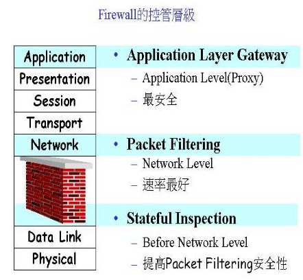 别设为只读,黑客就不能进一步进行破坏。 4、没有超级使用者 一般操作系统中均存在一个超级使用者,掌控所有系统的权限,在Windows系统中叫做"administrator", Unix中叫做"root"。一旦黑客取得这个使用者帐号,即可对系统进行全面性破坏,例如中断防火墙的运作。因此防火墙上的操作系统应该没有超级使用者,才能有效避免黑客破坏防火墙的运作体系。 防火墙是设计用来管控所有进出的数据包,而管控的体系因控管的程度而有所区别,我们称之为防火墙的控管级别,这就好比城门守卫,管制进出城门的人员。如下图所示,目前防火墙的控管级别大致上区分为三层: 防火墙的控管级别 Packet Filtering: Packet Filtering是最基本的防火墙控管,只能管控Network级别的数据包内容,因此过滤速度是三种级别中最快速的,相对的对于管控的安全性是最差的。举例来说,这就好像H君企图送杂志包裹给城内的A书店,Packet Filtering只检查H君的通行证,以及查询是否允许杂志包裹进入,如果答案是肯定的话就给予放行,否则给予阻挡。因此有可能H君所宣称的杂志包裹,实际上是邮包炸弹;页码:[1] [2] [3] [4] [5] [6] [7] [8] 第4页、共8页 |