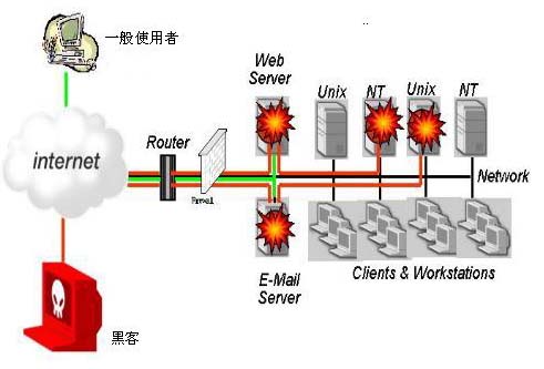 rver与E-Mail Server进行破坏,且一旦破坏成功后,又转而破坏其他Unix与NT主机。 常见的系统入侵行为 在防火墙的保护伞后面,仍然会遭受外部入侵的行为有: 1、妨碍系统正常运作(Denial of Service),以让所有网络连线中断为目的。 2、Buffer Overflow利用程序设计的疏失,异常中断程序运作。通常会伴随“root exploit”或“backdoor”的攻击。 3、截取超级使用者权限(root exploit)以控制系统,并据此攻击内部其他机器。 4、安装后门木马程序,供黑客随时进入系统用,同时自动收集相关信息传送给黑客。 网络需要全方位防卫 特洛伊城之所以久攻不破,是它有一道坚固的城墙,不会因城墙溃败而引来全面性的杀机;在Internet上我们也需要一道坚实的防火墙,以确保防火墙不会因被击溃,而导致企业内部数十乃至数百台的电脑的入侵危机。但木马屠城却给我们另一层的启示: