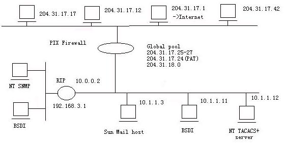结构图如下: PIX 520 Two Interface Multiple Server Configuration nameif ethernet0 outside security0 nameif ethernet0 inside security100 interface ethernet0 auto interface ethernet1 auto ip address inside 10.1.1.1 255.0.0.0 ip address outside 204.31.17.10 255.255.255.0 页码:[1] [2] [3] [4] [5] [6] 第1页、共6页 |