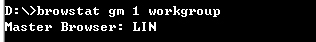 接着用命令browstat gm 1 workgroup 来查看workgroup工作组中的主浏览器是哪台计算机(图3),发现主浏览器是工作组中LIN这台计算机。
