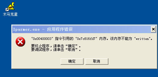 再试,木马克星已经无法打开了,看来是被某个木马程序或者恶意软件给干掉了。木马克星杀敌未遂,先被流氓给干掉了,然后就再也无法启动了。