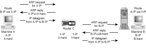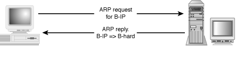 注意,虽然所有接口都收到了信息,但只有B回应该请求,这保证了回应的正确且避免了过期的信息。要注意的是,当A和B不在同一网段时,A只向下一跳的路由器发送ARP请求,而不是直接向B发送。
