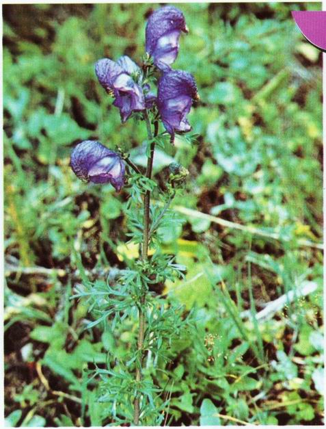 形态特征:毛茛科乌头属多年生草本植物,高达64厘米。块根胡萝卜状,长3-4.5厘米。茎下部叶在花期枯萎,茎中部薄革质,圆五角形,长3.8-5厘米,宽5.5-6.5厘米,三全裂,中央全裂片宽倒卵形,二至三回细裂,小裂片线形,长1.5-3毫米,侧全裂片斜扇形,不等二深裂至基部,叶柄长约3.5毫米。6-9月开花,总状花序具10余朵花;萼片蓝紫色,上萼片船状盔形或船形,宽5-8毫米,自基部至喙长12-1.4厘米;下萼片长约0.9厘米;花瓣的瓣片长约8毫米;唇长约3.5毫米;舌状,距长1·5毫米,反曲。
