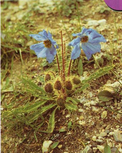 形态特征 婴粟科绿绒篙属一年生草本植物,高15-20厘米。全体被黄褐色或淡*坚硬而平展的刺。主根肥而长。茎近无或极短。叶均基生,披针形,长5-12厘米,宽约1厘米,两面被上述的刺;叶柄长0.5-3厘米。6-8月开花,花革坚挺,常5-12条,密被黄褐色平展的刺。花单生于花葶顶,半下垂,直径约2.5-4厘米,花瓣5-8,有时为4,蓝色或蓝紫色,宽倒卵形,长1.2-2厘米,宽1厘米。蒴果倒卵形或椭圆状长圆形,长1.2-2.5厘米,被上述的刺。