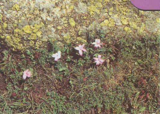 形态特征:百合科黄精属多年生矮小草本植物,高不到10厘米。根状茎圆柱形。叶几枚至10余枚,常紧接在一起,条形、长圆形或长圆状披针形,长2-4.5厘米,宽3-8毫米。5-6月开花,通常仅1朵花,少2朵;花被紫色,全长15-20(-25)毫米,花被简直径3-4毫米,6裂,裂片长6-10毫米。浆果红色,直径7-8毫米。