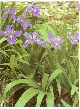 形态特征: 鸢尾科鸢尾属多年生草本植物。根状茎粗壮。叶基生,宽剑形,长15-50厘米,宽1.5-3.5厘米。花茎高20-40厘米,顶端具2-3枚苞片、苞片内含有1-2朵花;花4-5月于,蓝紫色,直径约10厘米;外花被片圆形或宽卵形,长5-6厘米,宽约4厘未,中脉上有不规则的鸡冠状附属物;内花被片椭圆形,长4.5-5厘米,宽约3厘米。蒴果长椭圆形或倒卵形,长4.5-6厘米;种子梨形,黑褐色。