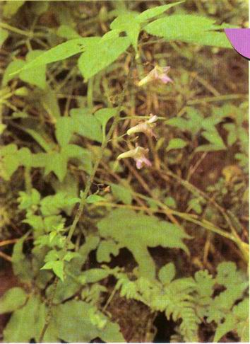 形态特征:风仙花科凤仙花属一年生草本植物,高30-70厘米。茎纤细,直立,分枝。叶互生,常集生于茎上部,卵形或长圆状卵形,长3-10厘米,宽2.5-4厘米;叶柄长1-4厘米。7-9用开花,总花梗纤细,长2-4厘米,仅具1朵花,花淡紫色或紫红色,萼片2,狭卵形,长5-7毫米,两侧不等;旗瓣圆形,径约1.2厘米;翼瓣2裂,长约1.5厘米;唇瓣角状,长2-2.5厘米,基部伸长成细长内弯的距。蒴果线形,长3-4厘米。种子长圆形,长约2.5毫米,栗褐色。