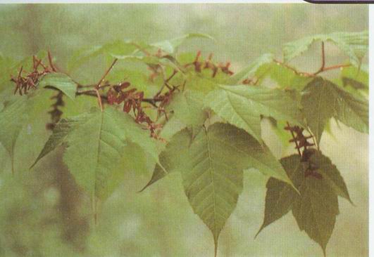 形态特征:槭树科槭属落叶乔木植物,高5-8米。叶纸质,轮廓近圆形,长7-10厘米,宽6-8毫米,基部心形,常3裂,中裂片卵形,顶端锐尖;叶柄淡紫红色。4-5月开花,总状花序,长4厘米,淡紫色,花单性异株。雄花萼片5,淡紫绿色,长圆倒卵形,长5毫米;花瓣5,阔倒卵形,淡黄绿色,长5毫米;雄蕊8,长2毫米;花丝无毛。翅果嫩时紫红色,后变淡*,小坚果微扁平,长7毫米,宽4毫米,翅镰刀形,宽8毫米。翅张开近于水平。