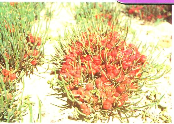 形态特征:麻黄科麻黄属矮小灌木植物,高5-15厘米。木质茎成根状茎,埋于土中顶端具短的分枝,伸出地面成节结状,常生有多数绿色小枝;小枝短,常仅1-3节间,节间长1-1.5厘米,径1.5-2毫米、纵槽纹明显。叶鞘状,2裂,长2-3毫米,下部的2/3合生,5-6月开花,雄球花单生于小枝中部的节上,具2(-3)对苞片;雄花具6枚雄蕊,花丝全部合生。雌球花单生,苞片2-3对;雌花1-2。雌球花成熟时肉质红色,近球形,长5-7毫米。