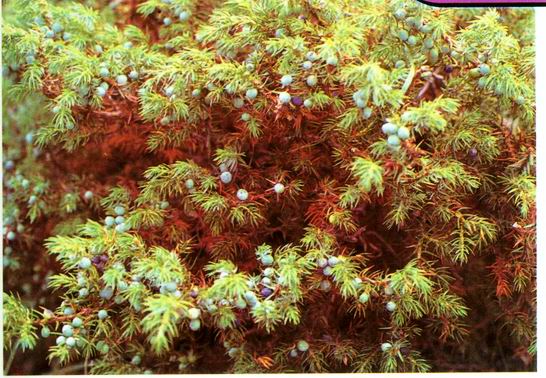 形态特征:柏科刺柏属匍匐灌木植物,高30-70厘米。枝皮灰色,小枝密,粗壮,径约2毫米。刺叶三叶轮生,斜伸,常稍成镰状弯曲,披针形或椭圆状披针形,长7-10毫米,宽1-1.5毫米,顶端急尖或上部渐狭成锐尖头,上面稍凹,中间有1条较绿色边带为宽的白粉带,下面具棱脊。球果圆球形或近球形,直径5-7毫米,熟时褐黑色,被白粉。