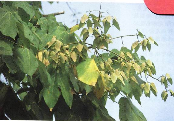 (青桐、桐麻)形态特征:梧桐科梧桐属落叶乔木植物,高15米左右。树皮绿色,平滑。叶宽达30厘米,3-5浅或深裂,掌状。圆锥花序长约20厘米。花单性,无花瓣。骨突果5,在成熟前裂开,纸质,长7-9。5厘米,种子4-5,球形。