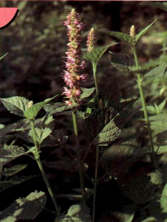 形态特征:唇形科藿香属多年生直立草本植物,茎高0.5-1.5米。叶心状卵形至矩圆状披针形,长4.5-11厘米,宽3-6.5厘米。轮伞花序多花,在主茎或侧枝上组成顶生密集圆筒状的假穗状花序,蓝紫色或淡紫色。小坚果卵状矩圆形,腹部具棱,顶端具短硬毛,*。