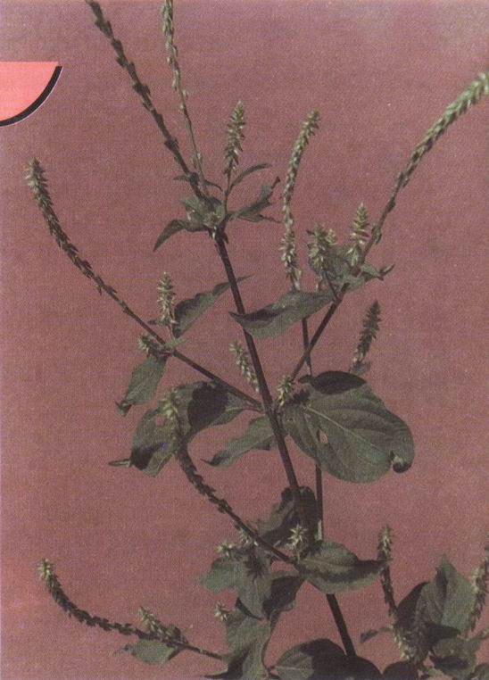 形态特征: 苋科牛膝属多年生草本植物,高70-l20厘米。根圆柱状。茎有棱角,节部膨大,有分枝。叶卵形至椭圆形,长4.5-12厘未。穗状花序,腋生和顶生,花绿色。胞果矩圆形,长2-2.5厘米。