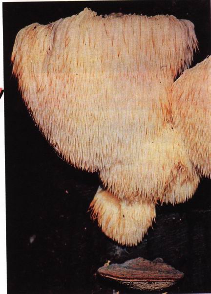 形态特征:担子菌纲齿菌科的一种真菌。子实体形状似猴子的头,故名猴头。新鲜时白色,于后变成淡褐色,块状,直径3.5-10厘米。除基部外、均密布以肉质、针状的刺,下垂,长1-3厘米。
