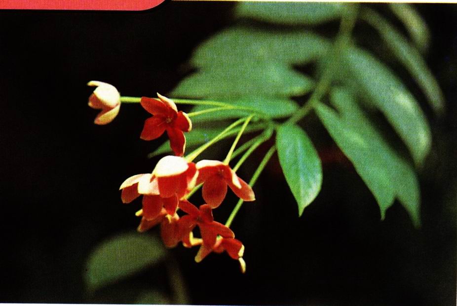 形态特征:使君子科使君子属落叶藤状灌木植物,高约2-8米。嫩枝和幼叶有黄褐色短柔毛,叶对生,矩圆形、椭圆至卵形,长6-13厘米,宽3-5.5厘米。穗状花序顶生,下垂,花两性,白色变淡红色。果近橄榄核状,长2.5-4厘米,有5棱,熟时黑色,有1颗白色种子。
