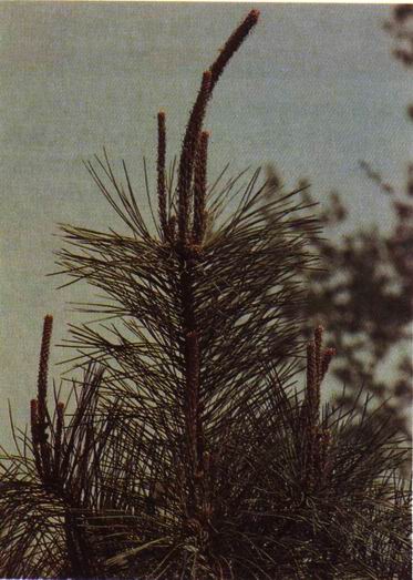 形态特征 松科松属常绿乔木植物。大树的枝条平展或微向下伸。树冠近平顶状。针叶2针一束,粗硬,长1-15厘米。球果卵圆形,长4-10厘米,成熟后宿存,暗褐色。种子长6-8毫米,种约长10毫米。