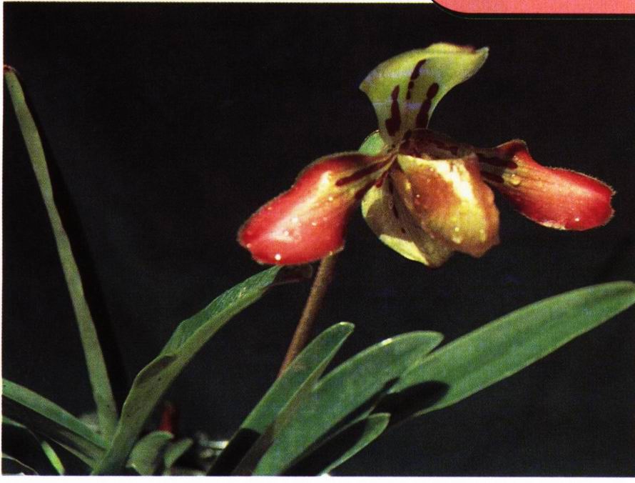 形态特征:兰科兜兰属多年生地生草本植物。叶均基生,4-6枚,线状带形,长16-25厘米,宽2.5-3.5厘米,绿色,顶端钝圆。花葶高20-22厘米,被毛,顶生1朵花,5-6月开花,花直径7-9厘米,中萼片倒卵形,长4.5-5厘米,宽3-3.5毫米,黄绿色,内面具3条纵的暗紫色不规则粗带,下部边缘反卷;合萼片淡*,长椭圆形,长4厘米,宽1.8厘米,顶端急尖;花瓣匙形,中部以上谈紫色,中部以下带黄绿色,长6.5厘米,宽3.5厘米,极张开,半卷曲,内面具2条明显的暗紫色粗带,顶端钝。唇瓣圆锥形,长5厘米,宽2.5厘米;退化雄蕊长圆形。