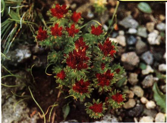 形态特征:景天科多年生草本植物,根粗壮直立。花茎长20-30厘米。叶疏生,椭圆形、椭圆状卵形、倒披针形至矩圆形,长7-35毫米,宽5-15毫米,顶端急尖或渐尖,无柄。伞房状花序,多花,宽3-4厘米,高2厘米;花瓣*或带绿色,长3毫米。