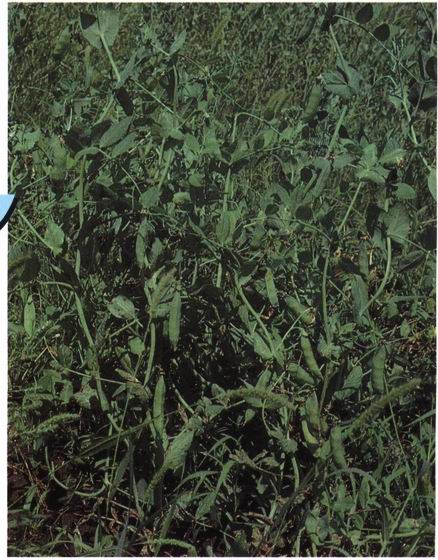 形态特征:豆科豌豆属一年生攀援草本植物,高达2米。小叶宽椭圆形,长2-5厘米,宽1-2.5厘米。花单生叶腋或数朵排列为总状而腋生,白色。荚果矩形,长5-10厘米,荚果内有坚纸质衬皮。种子圆形,2-10粒,青绿色,干后变为*。