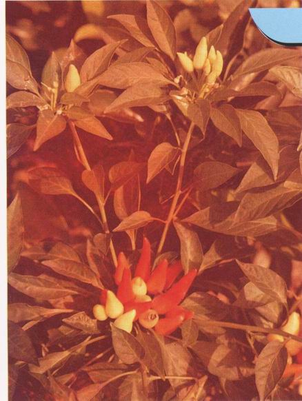形态特征:茄科辣椒属草本植物。茎半木质化或半灌木状,高40-60厘米。单叶互生,卵状披针形或矩圆形。花白色,小,单生叶腋或簇生枝梢顶端。浆果直立,指形,圆锥形或球形,有红、黄、白、紫等色。