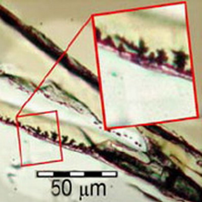 在各种预防措施下切开的陨石在显微镜下显出内部的最细小矿脉和枝状碳微观结构,它们与研究从海底升起的火山岩中发现的类似生成物完全相同。 < 1 > < 2 >